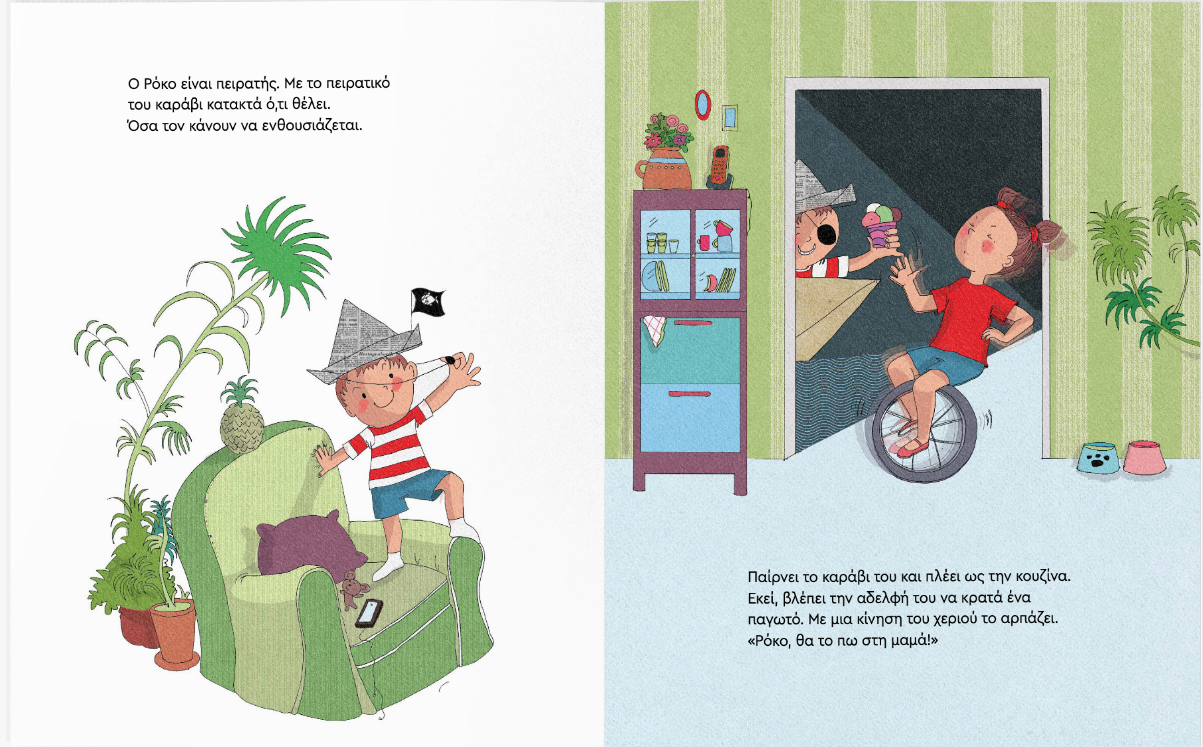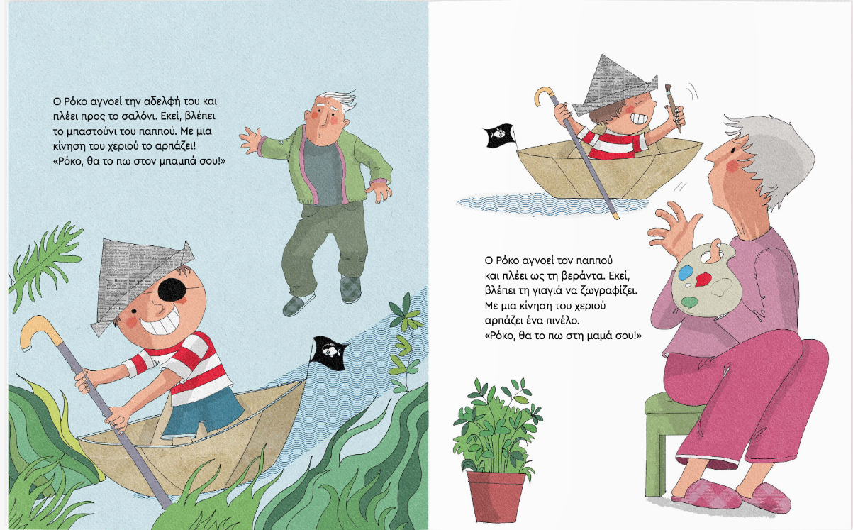 Rocco is a pirate. In his own unique way, he manages to snatch whatever he wants from the unsuspecting members of his family—because that’s the only thing that excites him! Until the day he finds a real treasure… then he forgets everything he had grabbed before and shares it with all his heart.